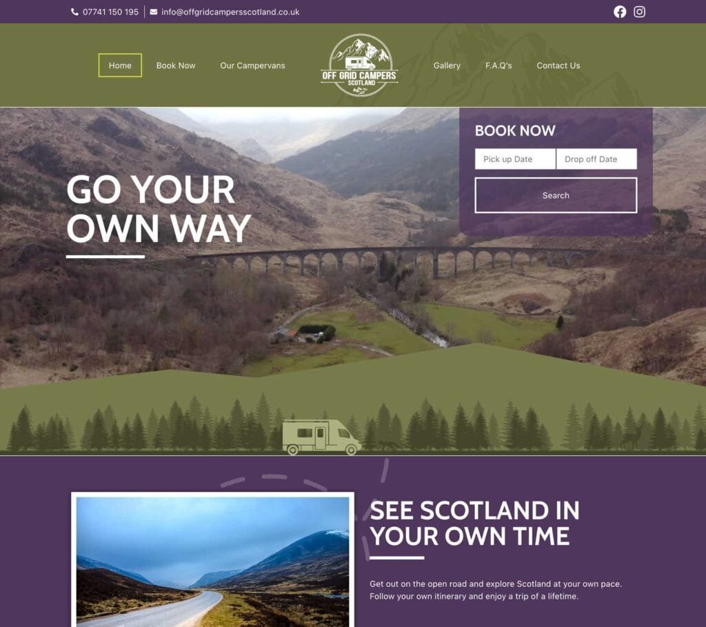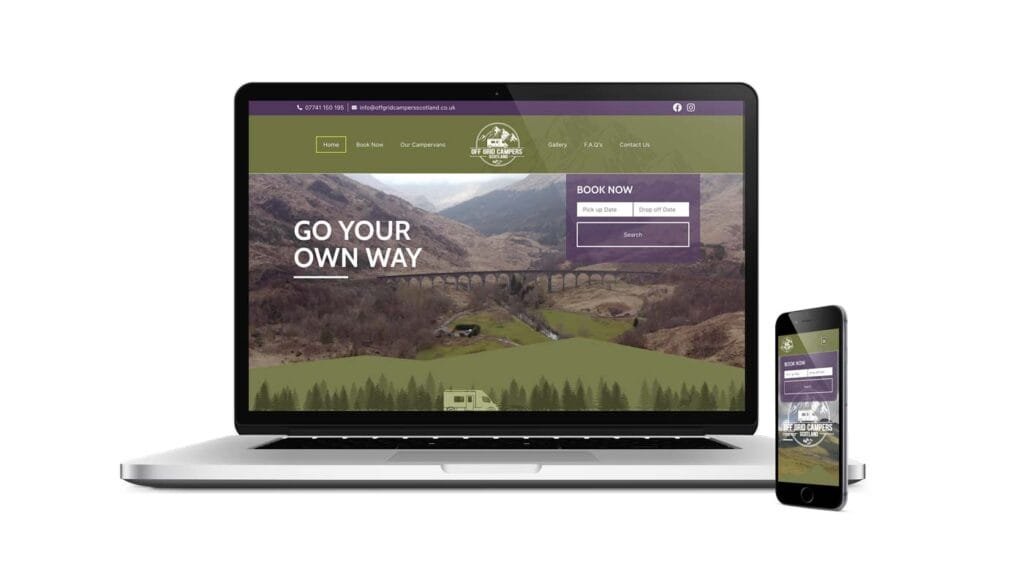 We worked with Off Grid Campers based in the Scottish Borders to bring their new business online. We took their logo design and developed a website using Scotish Highland inspired colours.